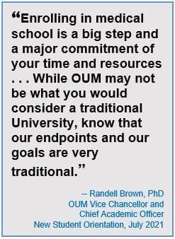 “Unlike face-to-face encounters in a classroom or meeting with a professor during office hours, communicating virtually, live and by email, sometimes results in an air of informality. I want to stress that you are in training to be medical professionals. And that the word ‘professional’ means something. At OUM, we take very seriously how we interact with each other, whether students, staff, or professors. Always keep this in mind.”