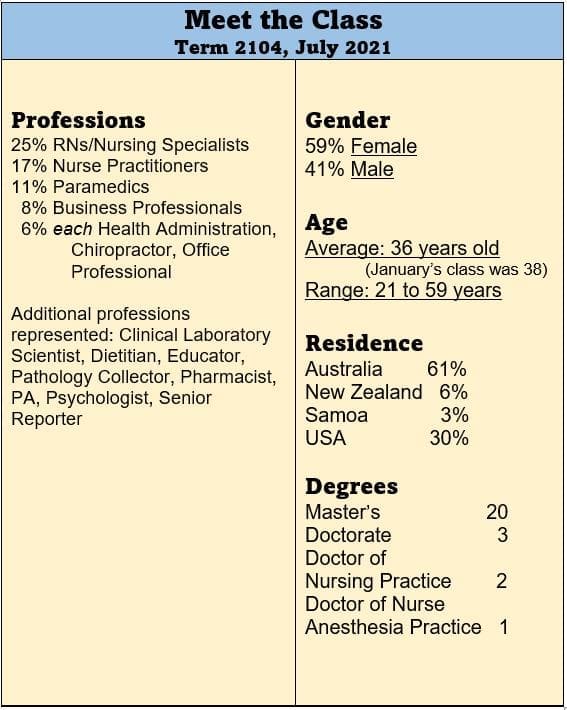 The depth of professions is impressive, as usual – 42 percent bring nursing careers to OUM, ranging from RNs and Nurse Practitioners to Clinical Care Consultants and Clinical Nurse Specialists. More than 35 percent of this class works in another career associated with healthcare – paramedics, healthcare administration, medical science, and pharmacy, to name a few. Very interesting: 20 percent have matriculated to medical school with no healthcare experience – business professionals, senior reporter, educator, office personnel.