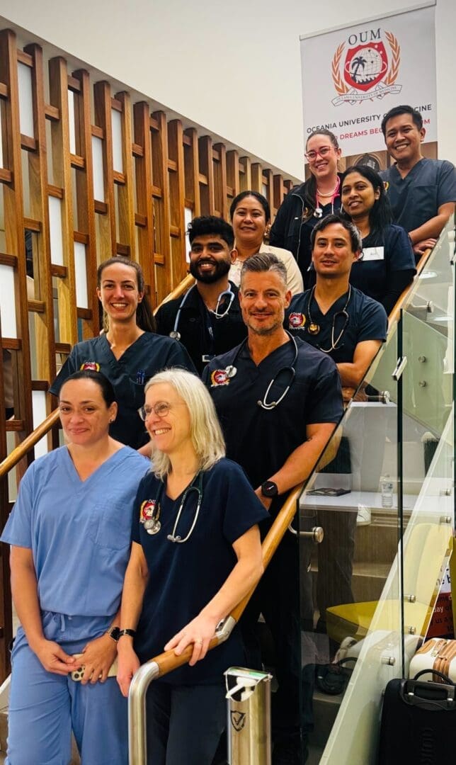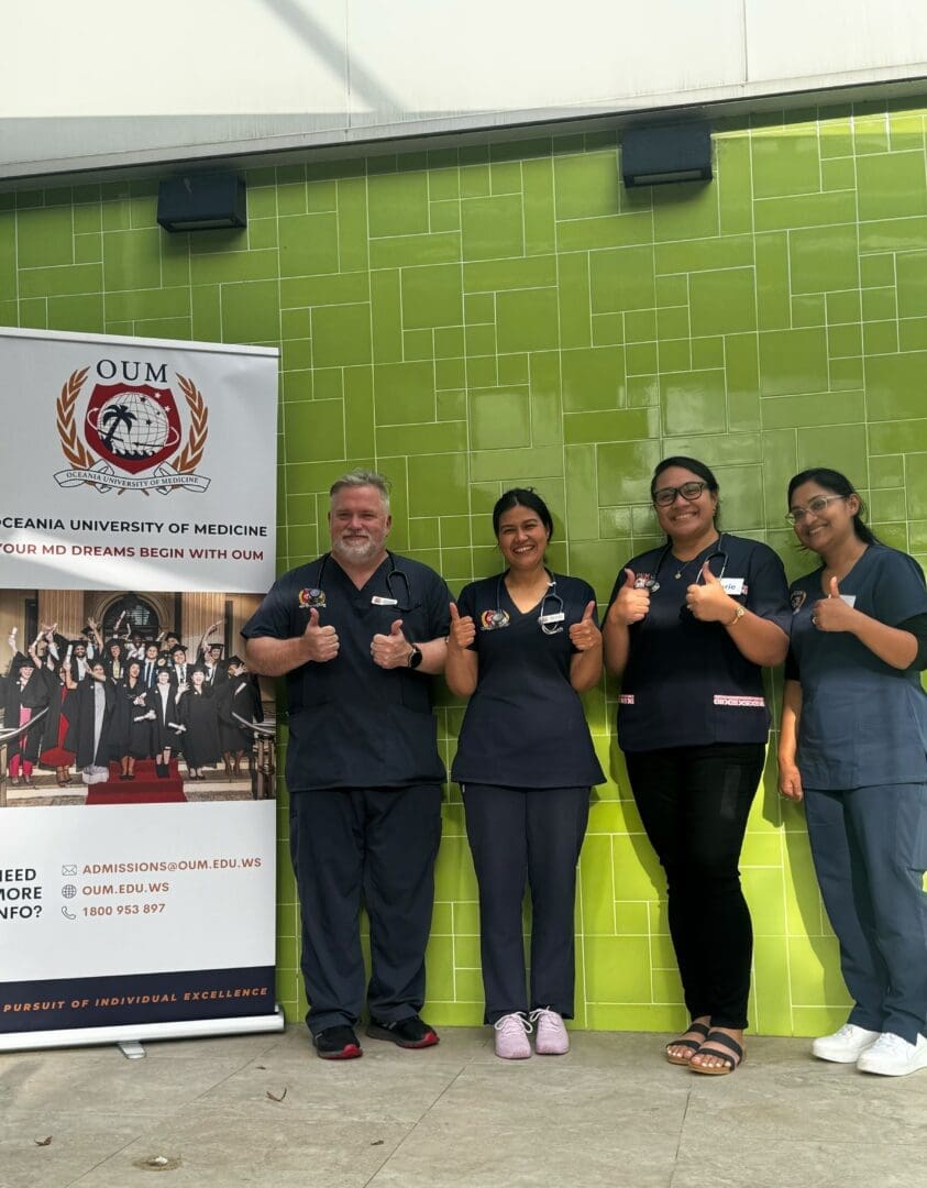 But before OUM students are allowed to begin clinical rotations, they must complete Clinical Transition Units (CTUs), two eight-week training periods culminating in an in-person week. CTUs were introduced to the curriculum this year, and in-person sessions were held twice in Brisbane, Australia, and once in Apia, Samoa.